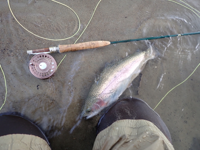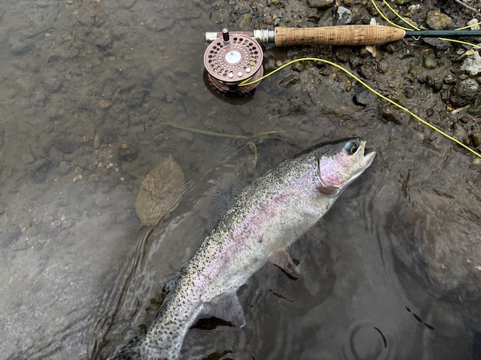 2023年、「気軽に使える オールド・フライリール」(129号)特集の取材で宮城の杜の家ブルックさんへ伺った際、ちょいと足を延ばして荒雄川のニジマス釣りへ行った。あの時は16匹の大爆発であった。