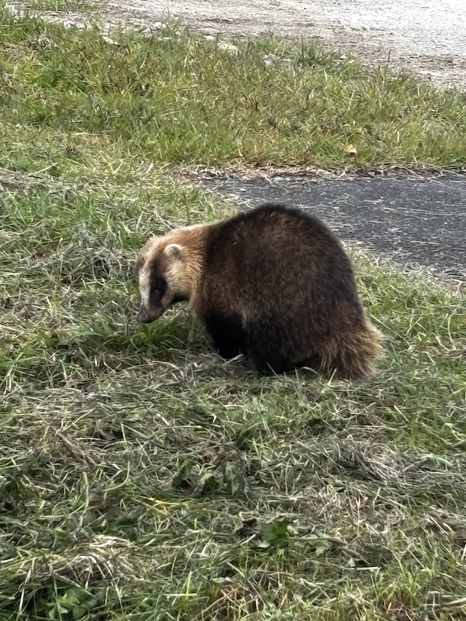 この子、地元の人はハクビシンだって言ってたけど、白昼堂々アナグマっすよね。