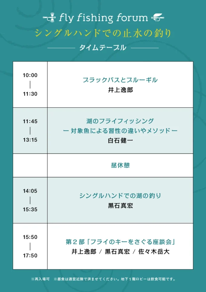 フライフィッシング・フォーラムは今年で第三回。25名の参加枠は毎回募集して瞬殺で埋まる人気だそうです。今回残念な思いをされた方は、2026年11月に入ったらこちらの情報をチェキラで