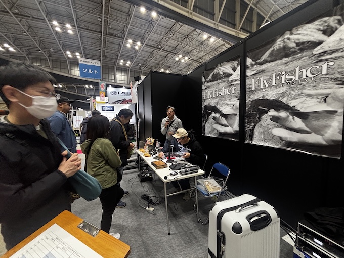フライフィッシング専用ゾーンが今年もある。スペースが小さくなったとか言う人もいたけど、フライゾーンを作ってもらっただけ、ありがたい。今年は過去最大の出展数で、一社当たりのスペースが小さくなるのは仕方ない。