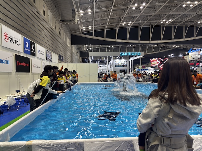 「マス釣りだって。子供にはいいよね」「うん、そうだね。ルアーついてる?」「いや、虫がついてる」。隣に立っていた非釣り関係風の取材風の若いお二人の会話。釣りを知らなければ、まあこんな理解なんだろう。