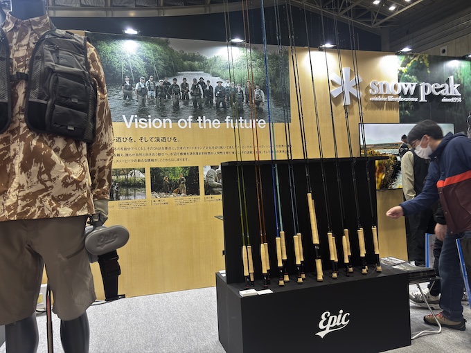 スノーピークさんのブースはフライフィッシング関係でいちばん大きい。